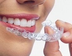 自分の歯列に合わせた専用トレー(マウスピース状の型)をはめ、徐々に歯列をずらして矯正していく方法です。